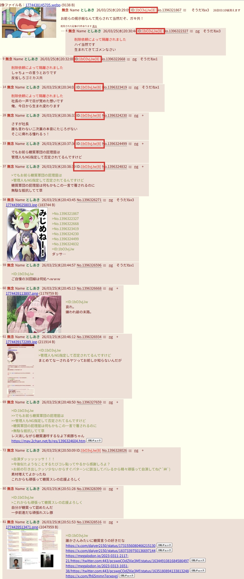 | … | 42無念Nameとしあき26/03/27(金)08:57:18No.1396616601+一回ブヒッと鳴く都度新しいクソスレを立てないで |