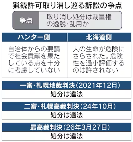 ヒグマ駆除で猟銃許可取り消しは違法