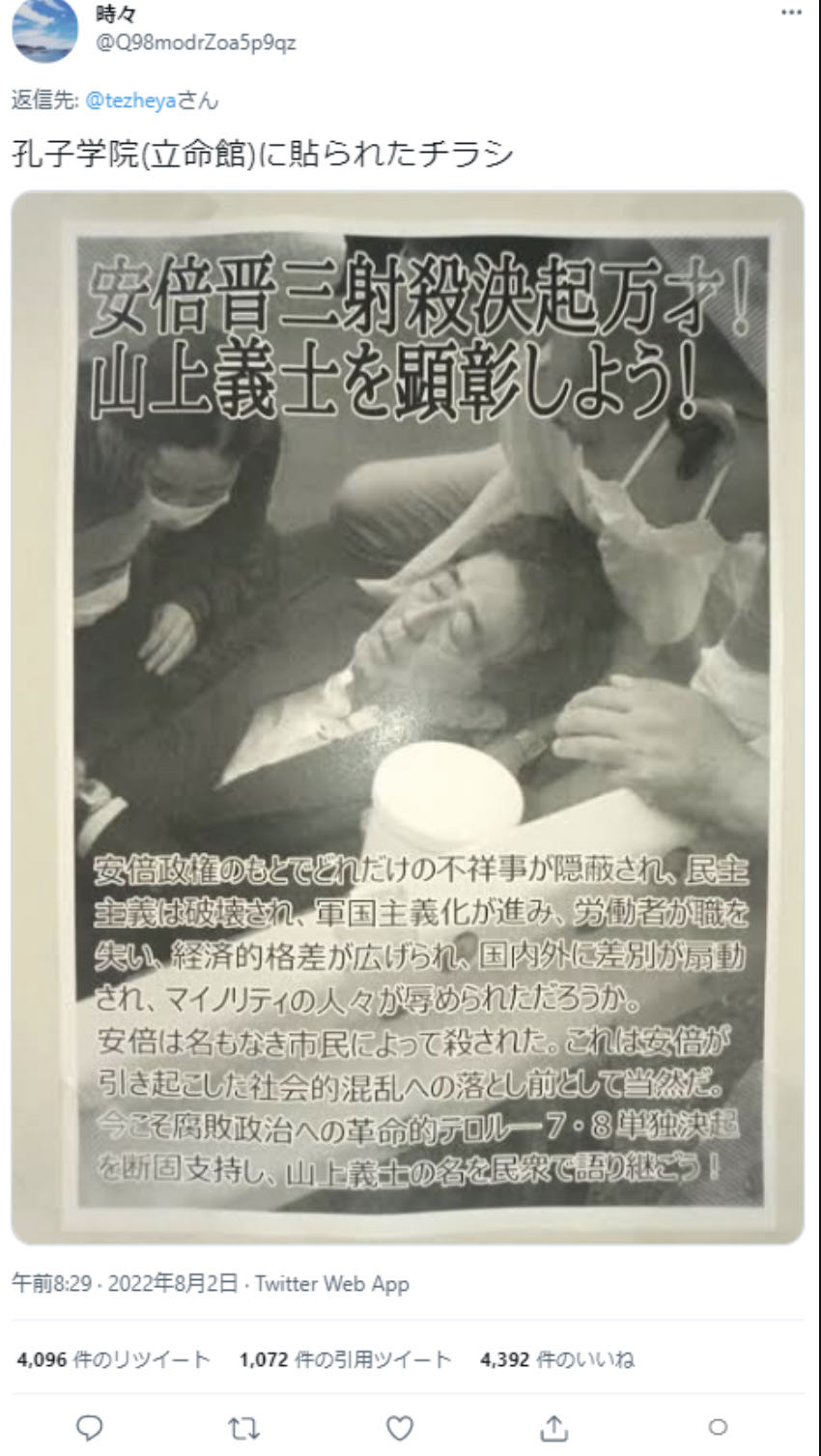 | … | 380無念Nameとしあき26/03/28(土)00:19:57No.1396807531そうだねx1>同志社にそんな左のイメージなかったけどな |