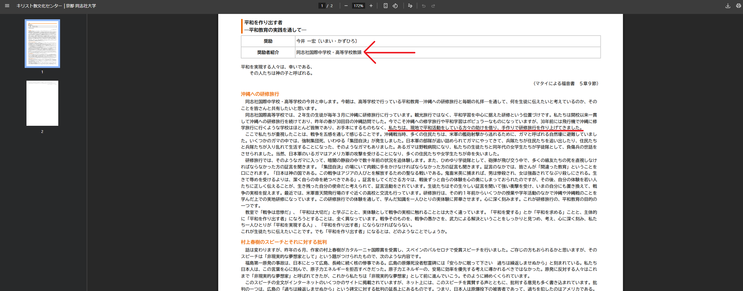 | … | 471無念Nameとしあき26/03/28(土)00:35:45No.1396810428+>そもそも平和学習は同志社が沖縄の平和活動家と手作りで作り上げたものだって2012年に誇らしげに語ってるんだ |