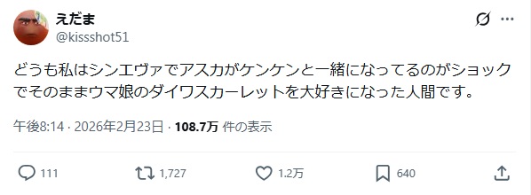 | … | 87無念Nameとしあき26/03/28(土)14:23:17No.1396913138+>やーいお前の母ちゃんダイワスカーレット!! |