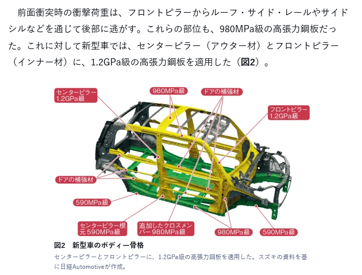 | … | 7無念Nameとしあき26/03/28(土)23:16:15No.1397043096+ 1774707375321.png-(316196 B) 車体の核心部分(フロント、ドア周り、ピラーなどの重要エリア)に1500MPaの熱成形鋼を採用 |