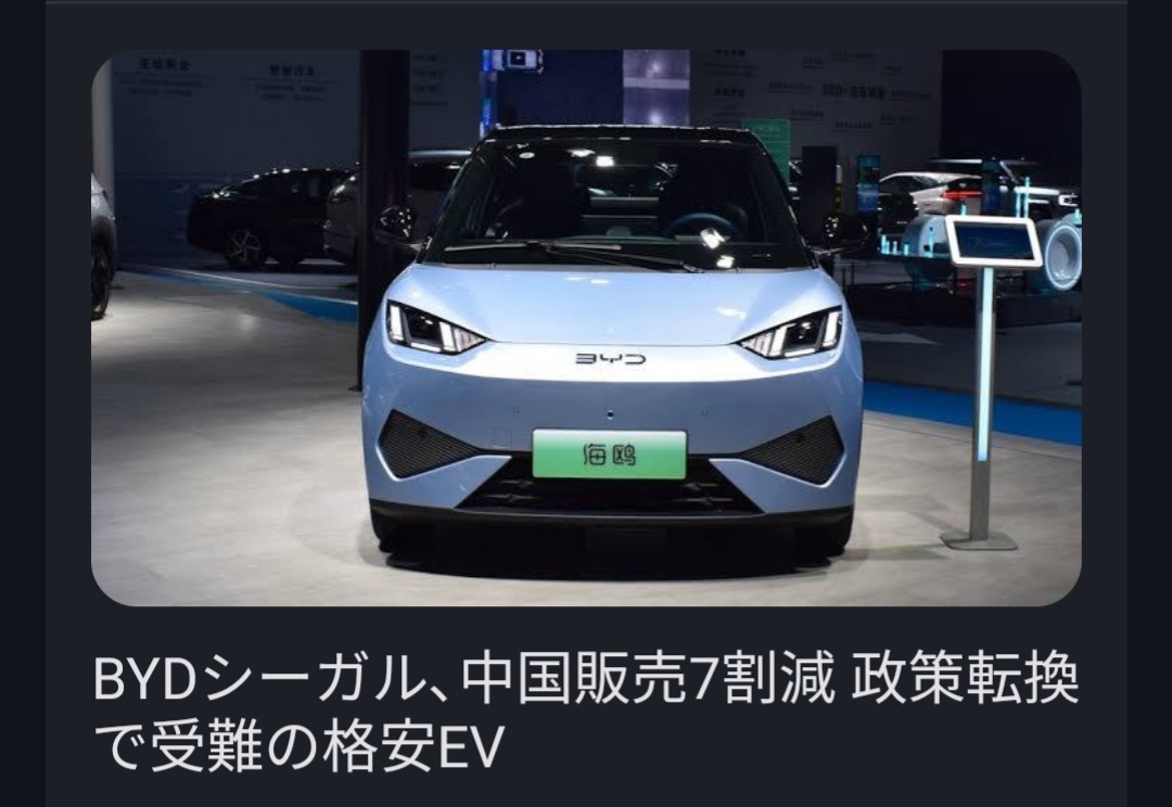 | … | 70無念Nameとしあき26/03/29(日)06:14:57No.1397091824+>BYDのスーパーハイトワゴン軽EVが出てから本番だろ |