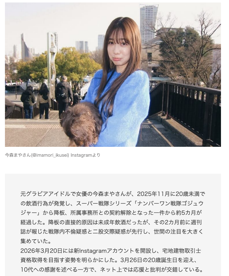 | … | 90無念Nameとしあき26/03/29(日)08:50:35No.1397106920+今森の身体をありがたがってる特撮ファンの童貞くんはいるから… |