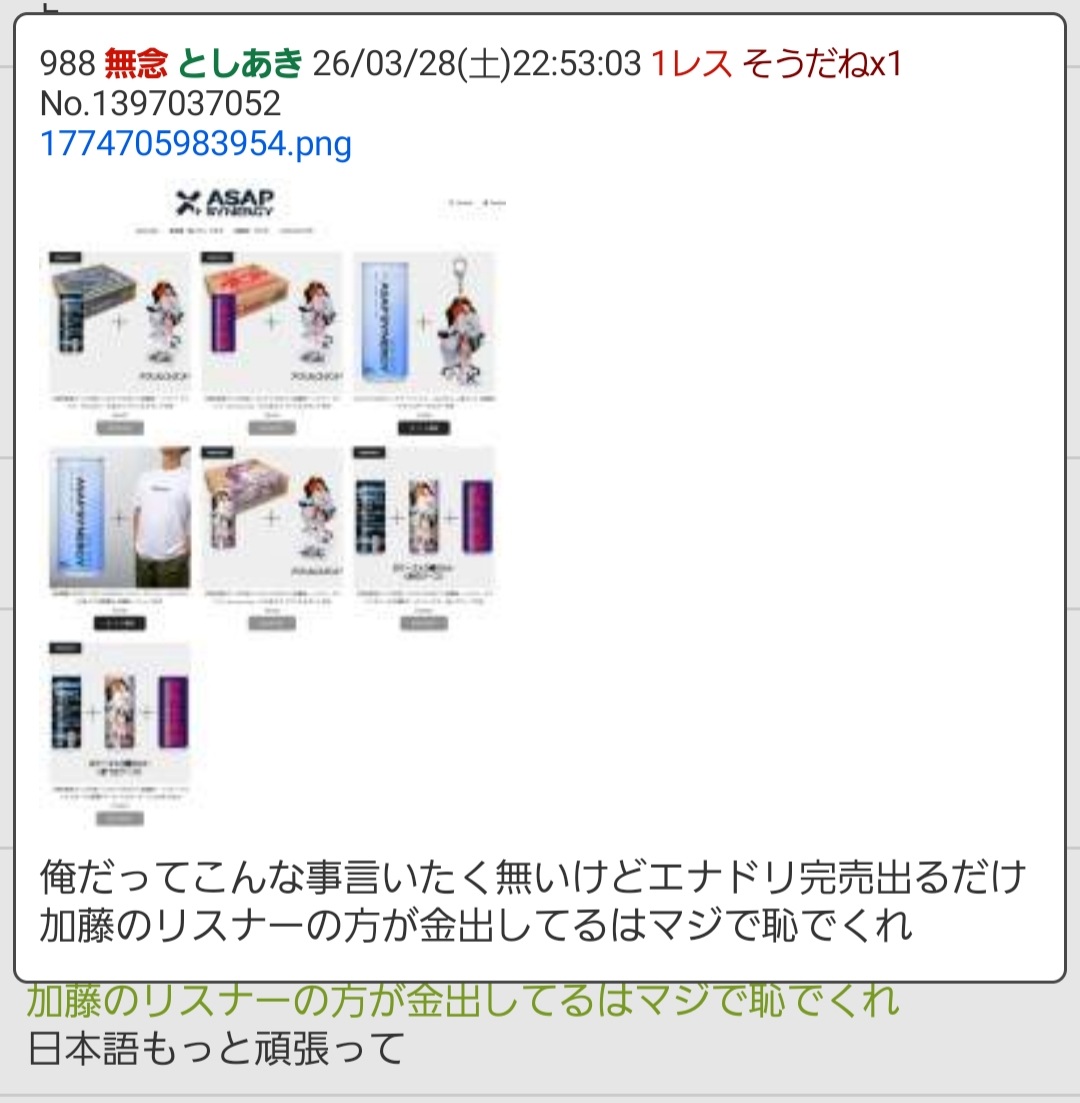 | … | 173無念Nameとしあき26/03/29(日)09:15:02No.1397111914+>スレ画を始めとしたリスナーだけなら兎も角だけど |