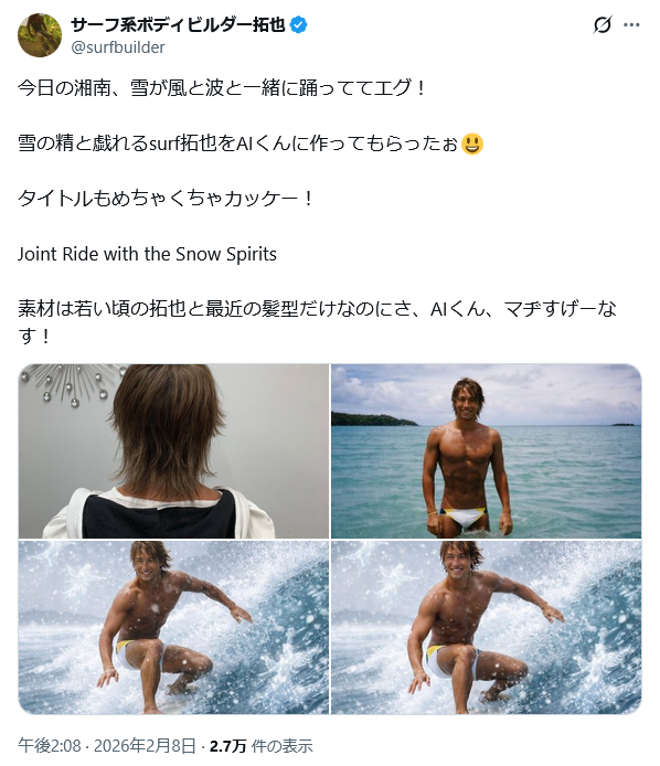 | … | 40無念Nameとしあき26/03/29(日)08:54:18No.1397107714そうだねx2AIでしか波乗りしないサーファーはサーファーではないな。 |