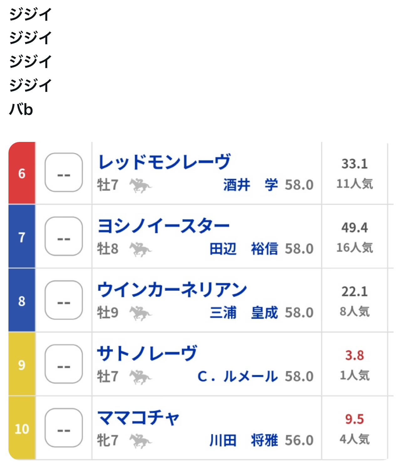 | … | 8無念Nameとしあき26/03/29(日)14:05:53No.1397173845+>メイショウナルカミなんか最後の方ペースがくっと落としていたけれど大丈夫かな…?ヴッフ |
