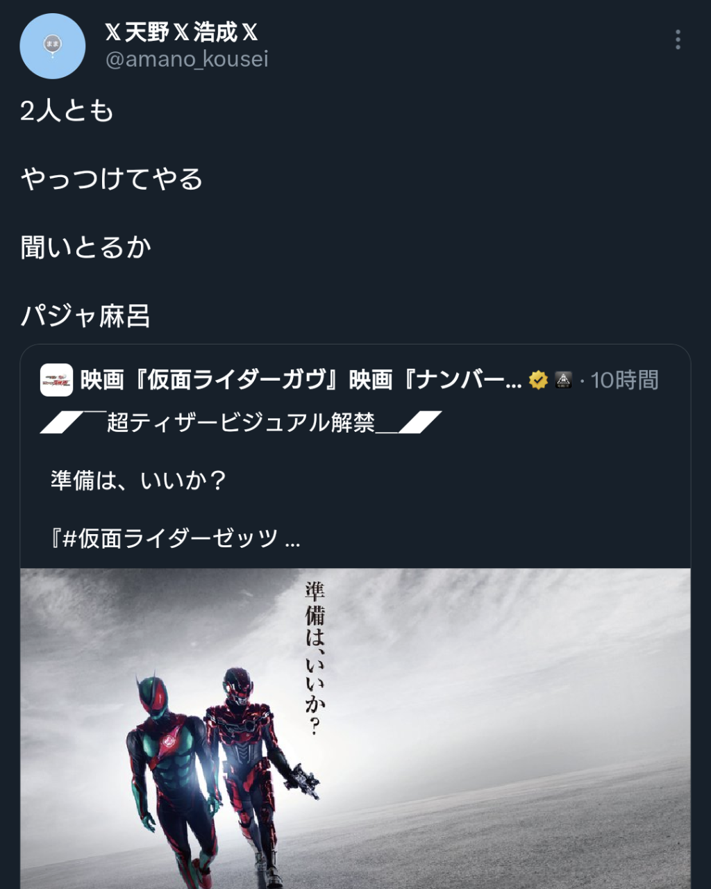 | … | 328無念Nameとしあき26/03/30(月)23:42:16No.1397535892+>>ゼから始まる令和ライダーは駄作 |