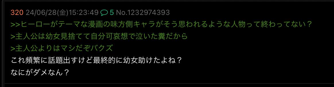 | … | 209無念Nameとしあき26/03/31(火)18:53:50No.1397679299そうだねx1>で始めておいて最終話で別にヒーローになってないのなんかのエラーじゃないのか? |