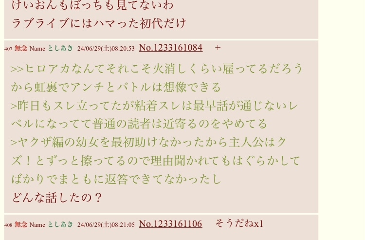 | … | 205無念Nameとしあき26/03/31(火)18:52:10No.1397678850+>嫉妬や粘着は荒らしの大好きなワードやぞ |