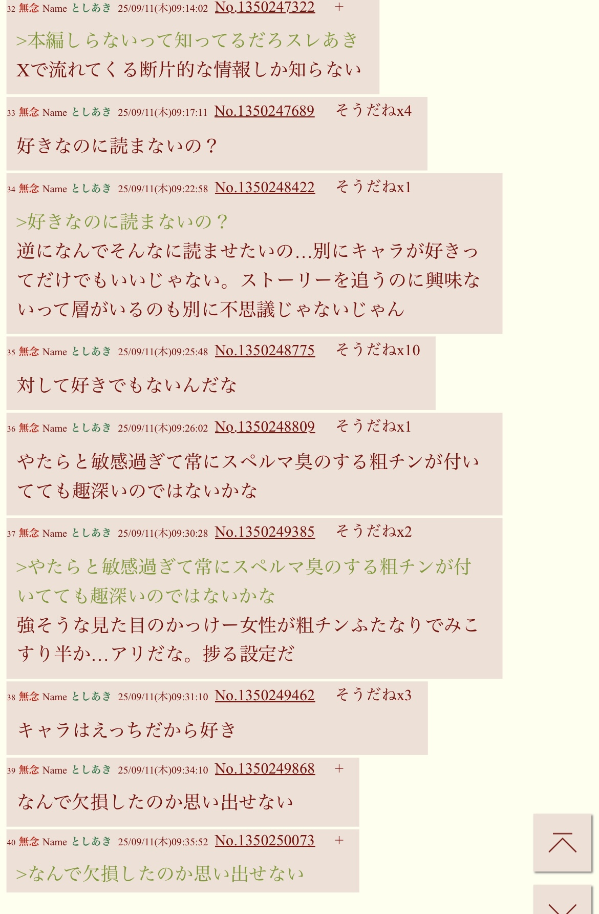 | … | 241無念Nameとしあき26/03/31(火)19:06:54No.1397682822そうだねx1>>ページはどんどん減っていったなそりゃ描き込む暇も出来るってもんだろうな |