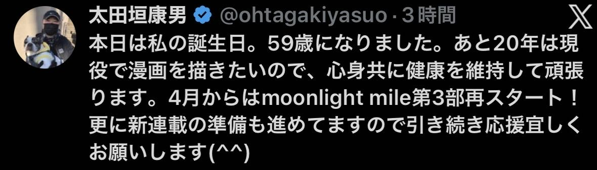 | … | 9無念Nameとしあき26/03/31(火)17:32:23No.1397660531そうだねx1ムーンライトマイルきっちり終わらせてから新連載してくれ |