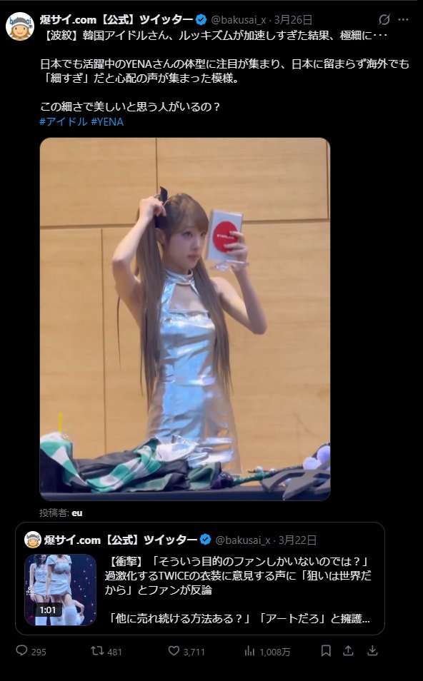 | … | 3無念Nameとしあき26/03/31(火)21:41:06No.1397727841+ 1774960866483.jpg-(87458 B) Xで1000万バズのイェナ |