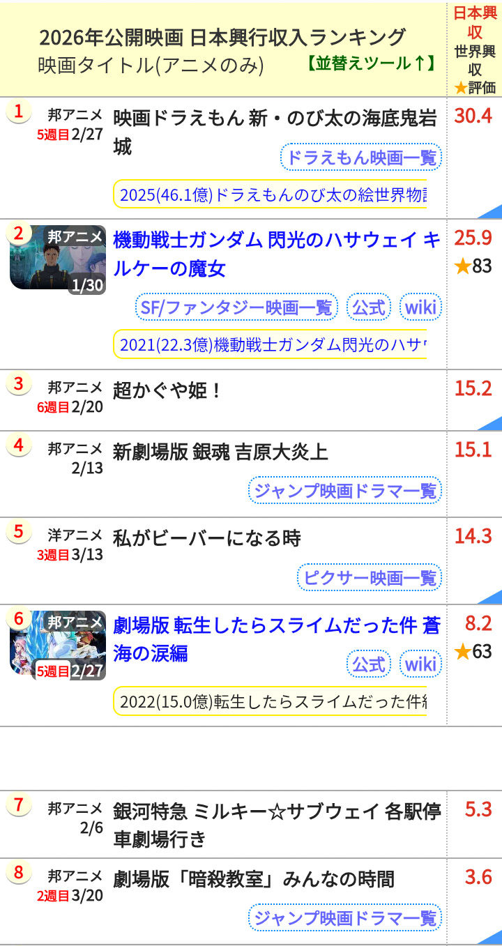| … | 550無念Nameとしあき26/04/01(水)02:22:08No.1397778415そうだねx3続編映画の興行はほぼ前作の評判だから今回の成績の悪さは間違いなく前作がイマイチだったせい |