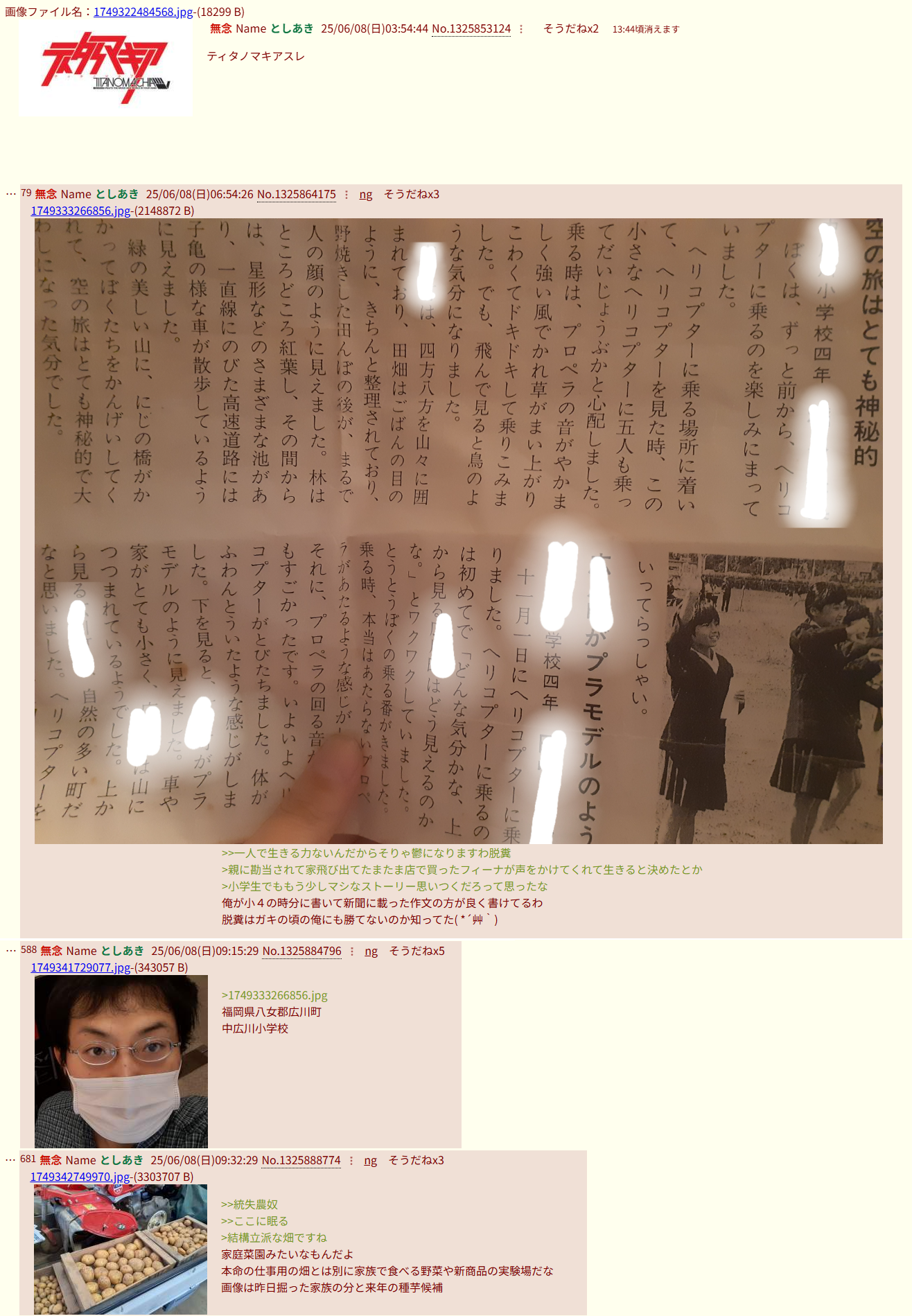 | … | 469無念Nameとしあき26/04/01(水)02:47:18No.1397779925そうだねx6 1774979238463.jpg-(429742 B) 統失は荒らしが半額弁当を食べてるみたいなのを信じてるからな |