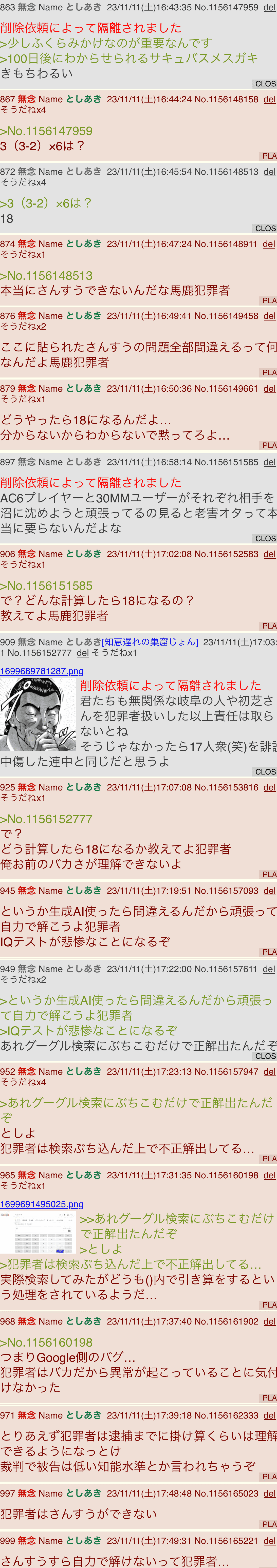 | … | 19無念Nameとしあき26/03/31(火)23:41:38No.1397756401そうだねx5管理人に粛清されたガイジ17匹 |