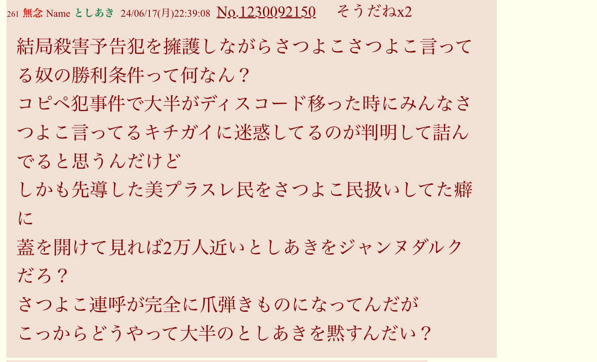 | … | 432無念Nameとしあき26/04/01(水)02:27:20No.1397778752+>>糖尿の荒らしを追ってた17人衆の話だろ |