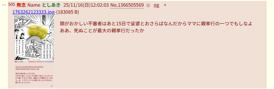 | … | 420無念Nameとしあき26/04/01(水)02:18:25No.1397778173そうだねx8>1774967467128.jpg |