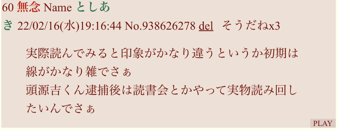 | … | 417無念Nameとしあき26/04/01(水)02:16:09No.1397778014+>>当時から粘着してた存在って17人になんて呼ばれてた? |