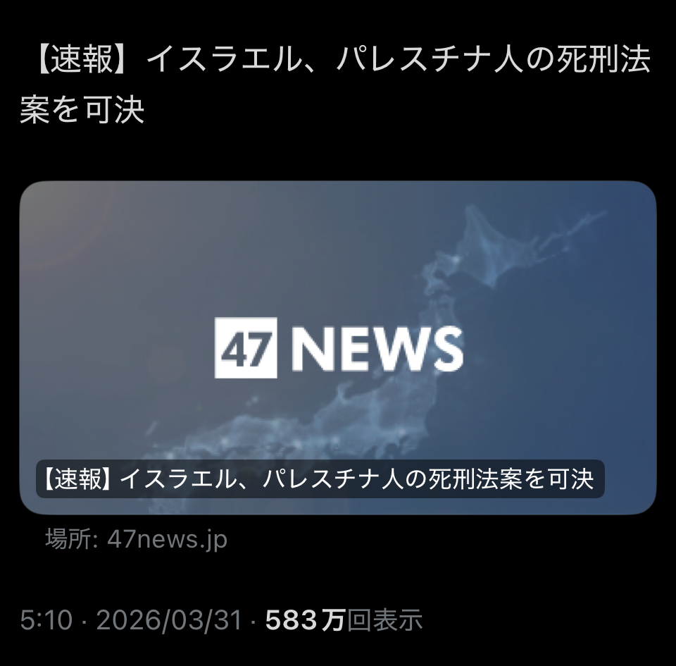| … | 9無念Nameとしあき26/03/31(火)23:38:42No.1397755880+日本人怒らすとリバイバルテルアビブやぞ |