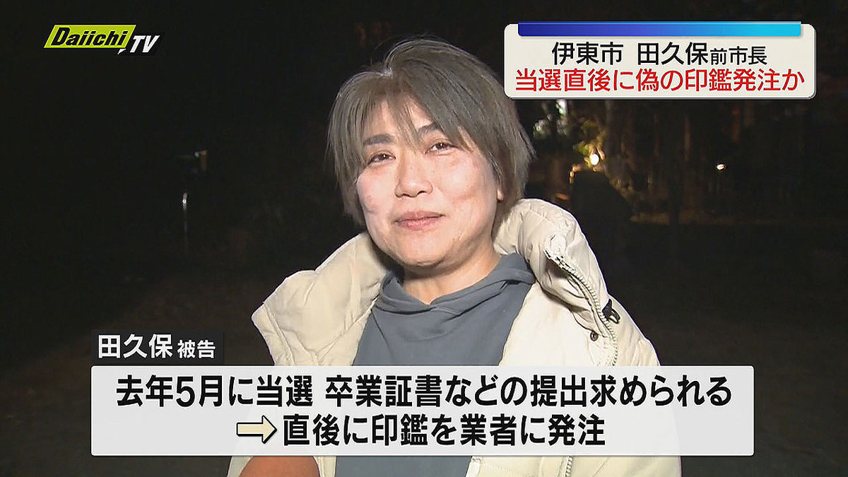卒業証書を偽造した罪などで30日、在宅起訴された静岡県伊東市の前市長・田久保真紀被告。あらたに、市長選に当選した直後に、卒業証書の偽造に使った印鑑をインターネットで業者に発注していたことがわかりました。