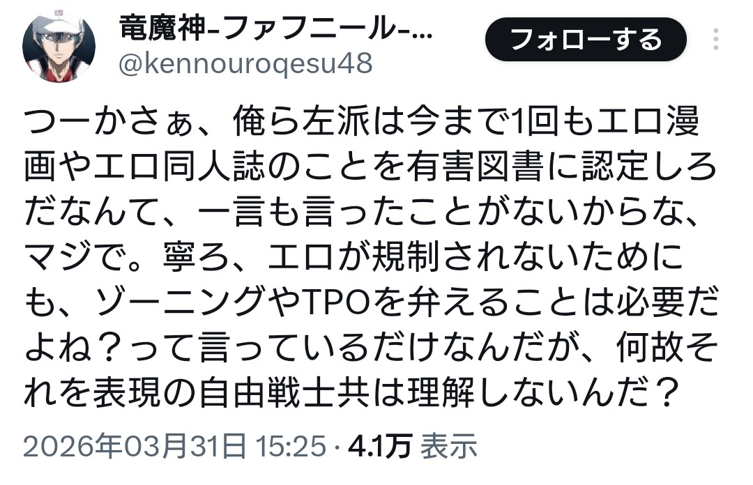 | … | 735無念Nameとしあき26/04/01(水)04:47:00No.1397785675そうだねx4左翼やフェミがやろうとしてきた表現規制は |