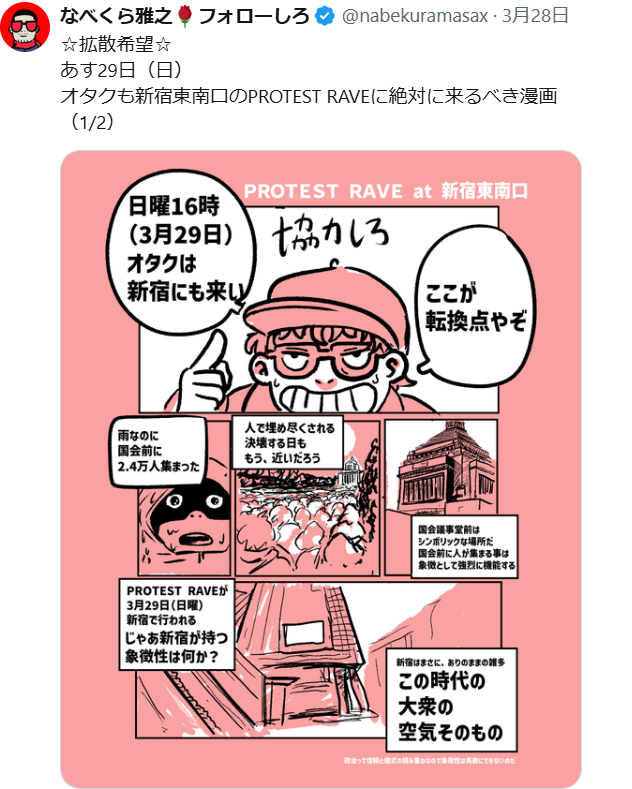 | … | 752無念Nameとしあき26/04/01(水)05:07:01No.1397786582そうだねx2参加した連中はオタクとは言えないいつもの活動家ばかりだったというオチ |