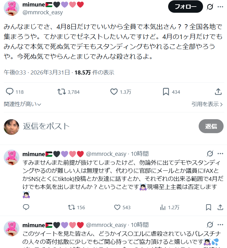 | … | 37無念Nameとしあき26/04/01(水)01:04:25No.1397770577そうだねx1中核派構成員を増やすための活動だよこれ |