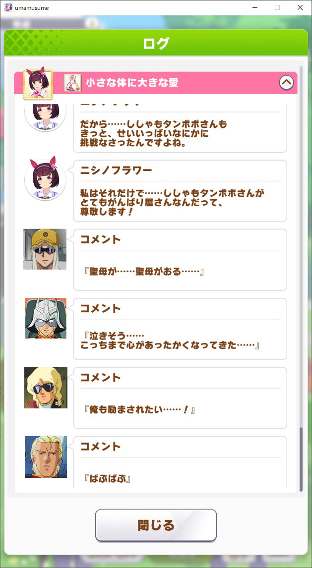 | … | 704無念Nameとしあき26/04/01(水)03:33:21No.1397782107+レース中の観客席がマキバオー仕様になるでもいいぞ |