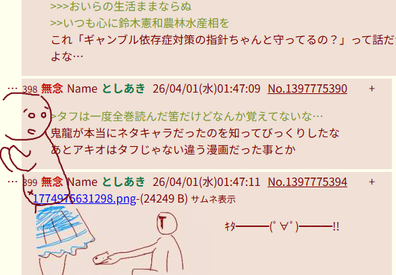 | … | 777無念Nameとしあき26/04/01(水)05:15:46No.1397787066+>1774981492743.jpg |