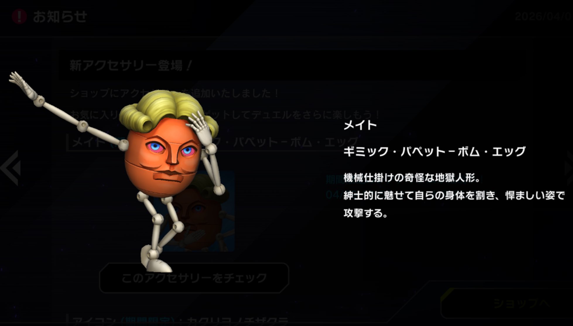 | … | 9無念Nameとしあき26/04/01(水)03:01:06 ID:u0A29EAANo.1397780652+ボムエッグも嫌いじゃないけどギミパペならネクロドールのメイトが欲しかったの |