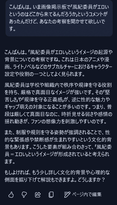 | … | 12無念Nameとしあき26/04/01(水)21:05:46No.1397933154+風紀委員がエロいというのはどこから来てるんだろうか |