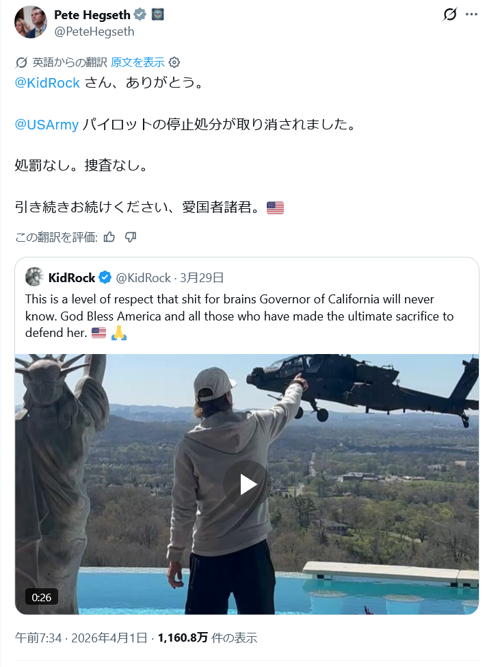 | … | 86無念Nameとしあき26/04/02(木)02:17:11No.1397985616+ 1775063831113.mp4-(5076421 B) AH-64でキッドロックの家を訪問 |