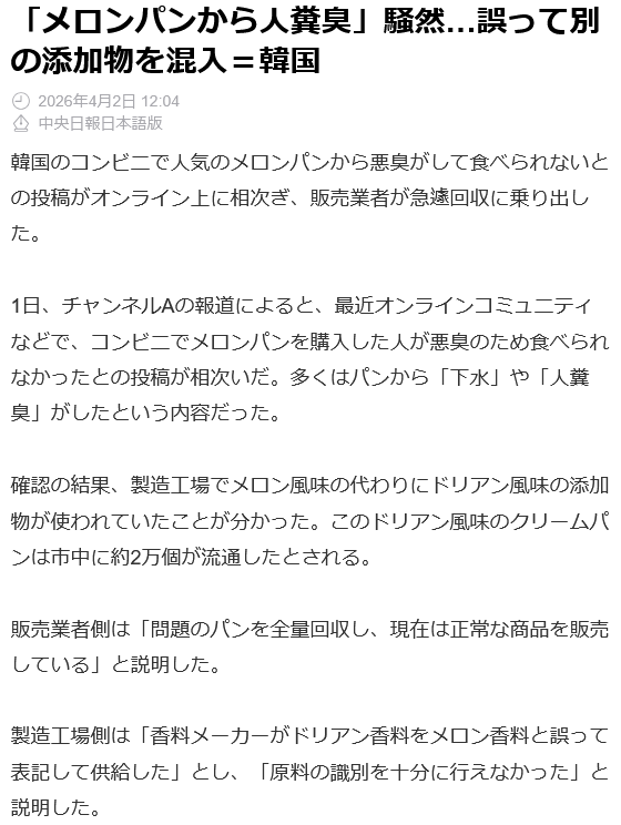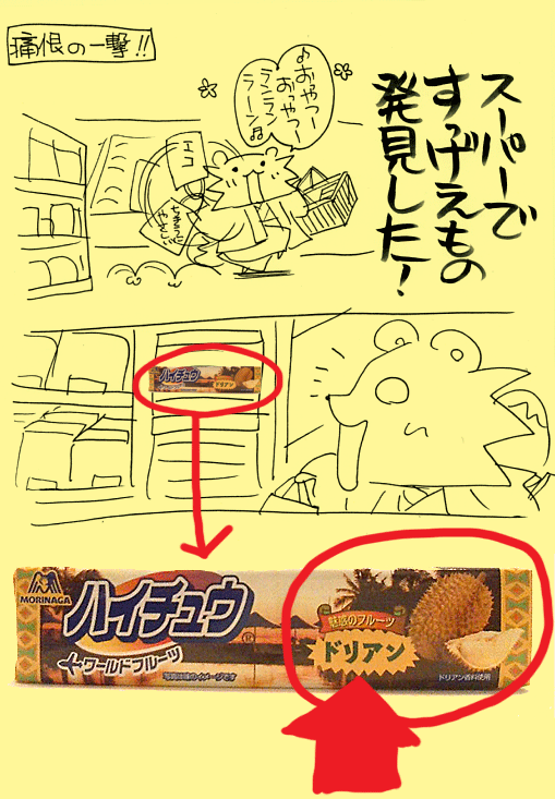 | … | 91無念Nameとしあき26/04/03(金)01:52:42No.1398192172そうだねx3 1775148762567.png-(180811 B) そういえば昔海外旅行のおみやげでドリアンのお菓子もらって味は美味しかったけど胃の中からドリアンの臭いが上がってくる感じだったの思い出した… |