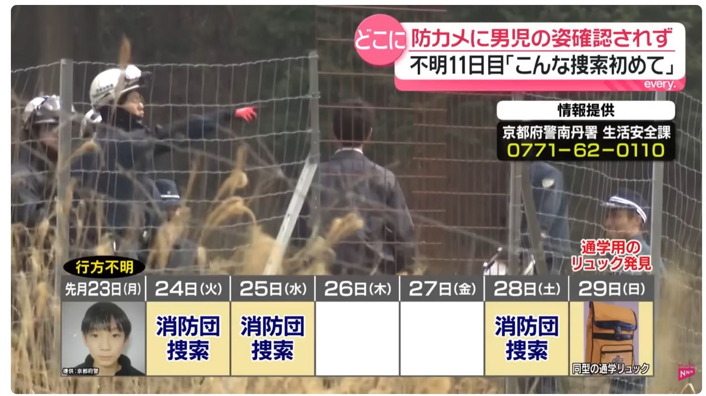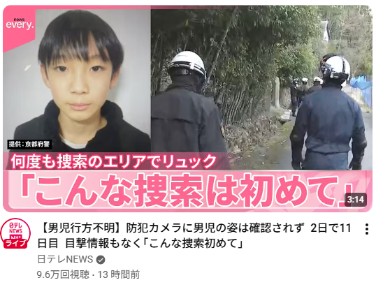 | … | 51無念Nameとしあき26/04/03(金)09:45:55No.1398219791そうだねx2 1775177155709.png-(371425 B) ・【男児行方不明】防犯カメラに男児の姿は確認されず 2日で11日目 目撃情報もなく「こんな捜索初めて」 |