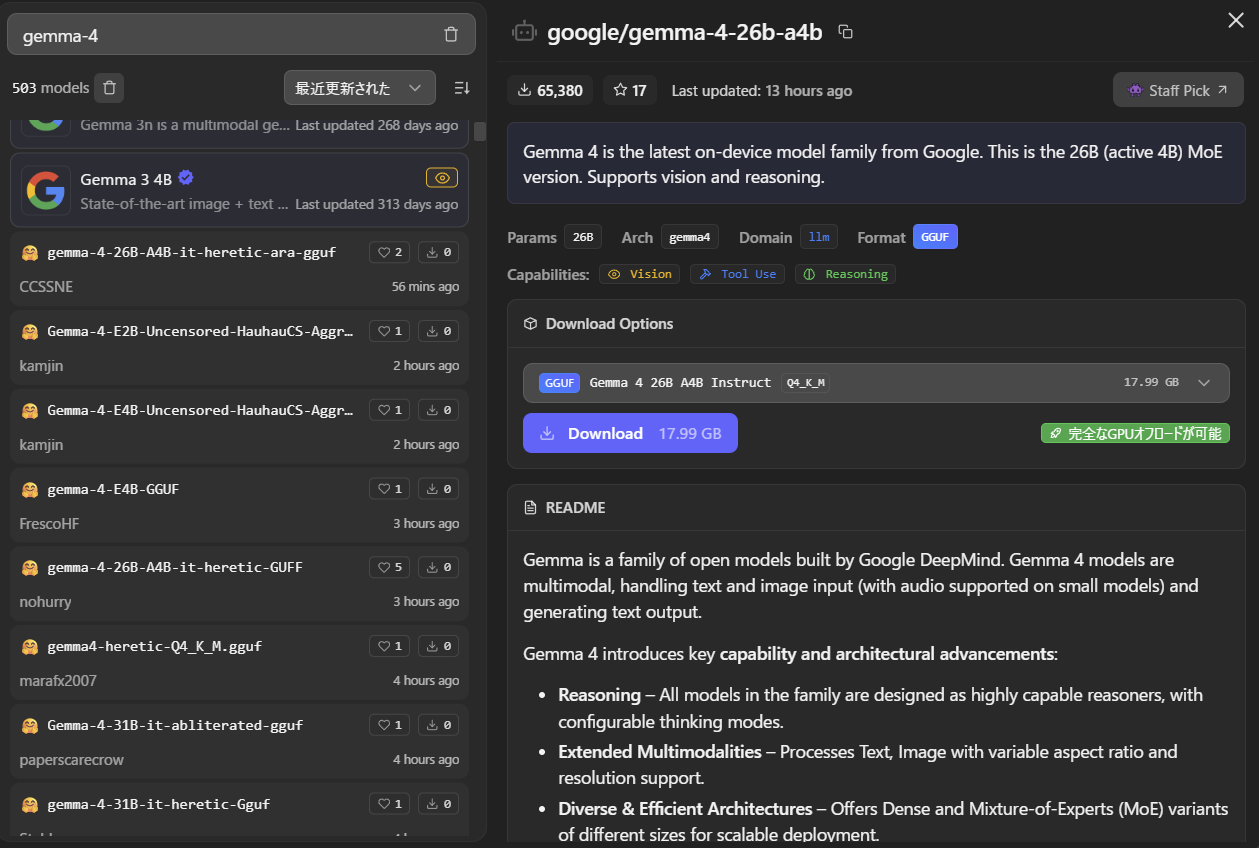 | … | 35無念Nameとしあき26/04/03(金)14:15:46No.1398257081+gemma4のe4b uncensoredやってみたけどqwe3.5の9bよりだいぶおバカだった速いけど |