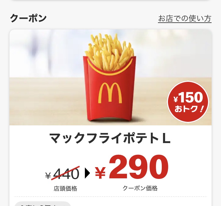 クーポンで今ならポテトLが290円!