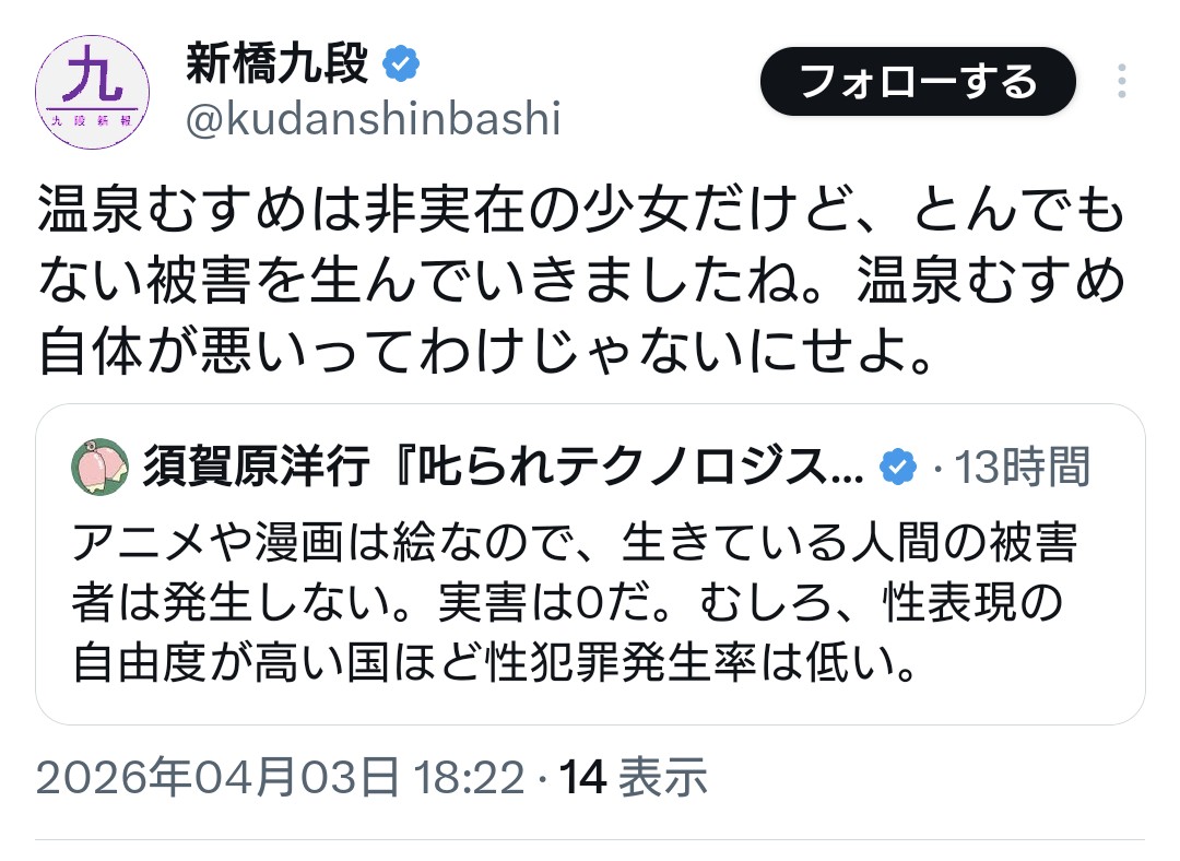 | … | 103無念Nameとしあき26/04/04(土)08:52:54No.1398429328+>マスコミは何故これを批判できないんだよ |