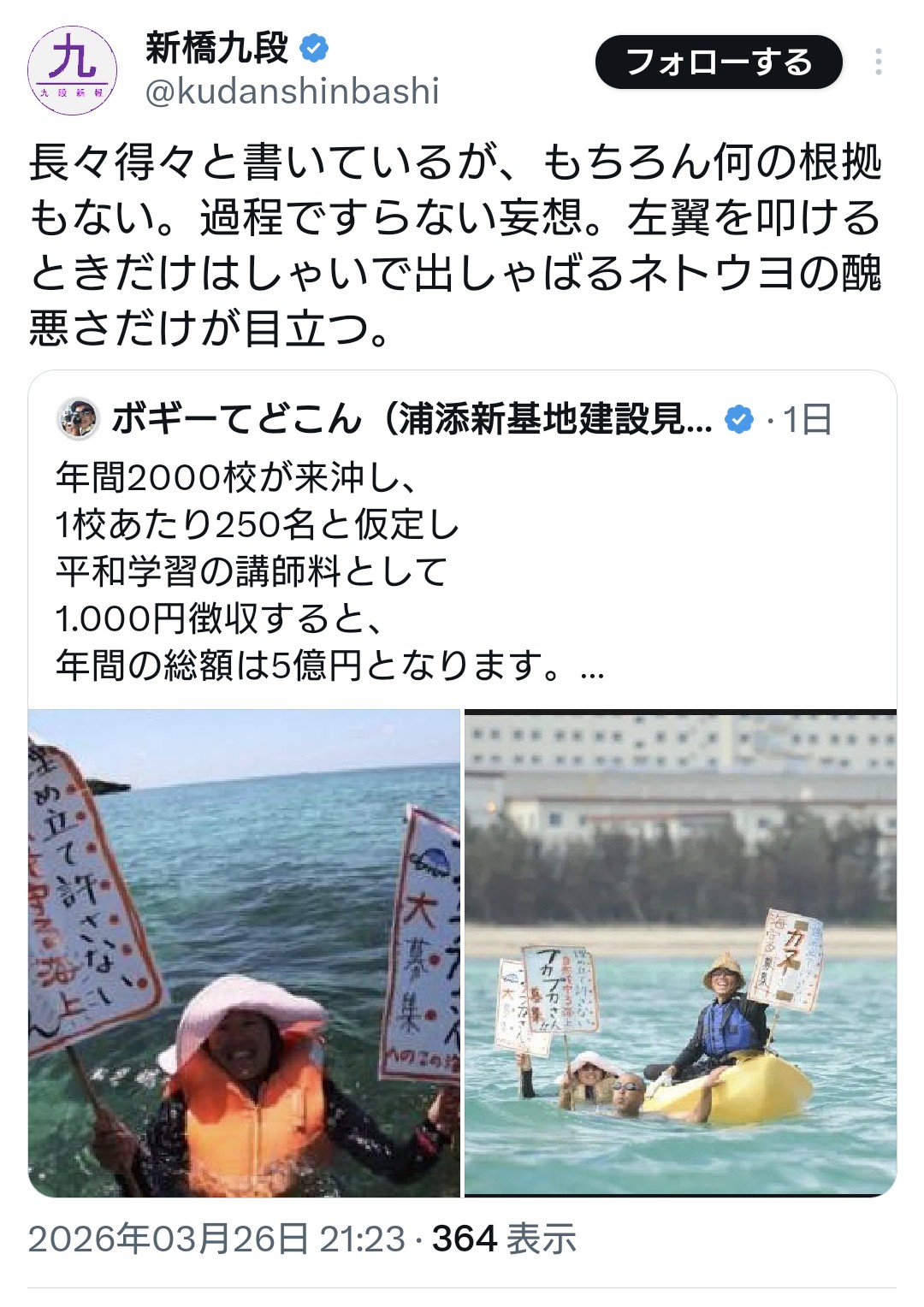 | … | 19無念Nameとしあき26/04/04(土)07:36:07No.1398420350+沖縄県民に支持されてない団体が沖縄で活動する不思議 |