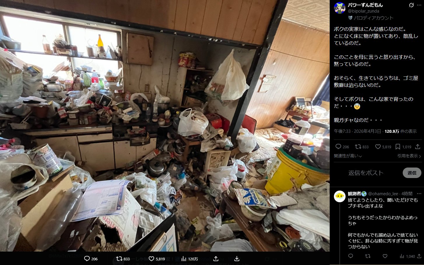 | … | 25無念Nameとしあき26/04/04(土)09:22:27No.1398433349+ウチの実家もモノで溢れかえって |