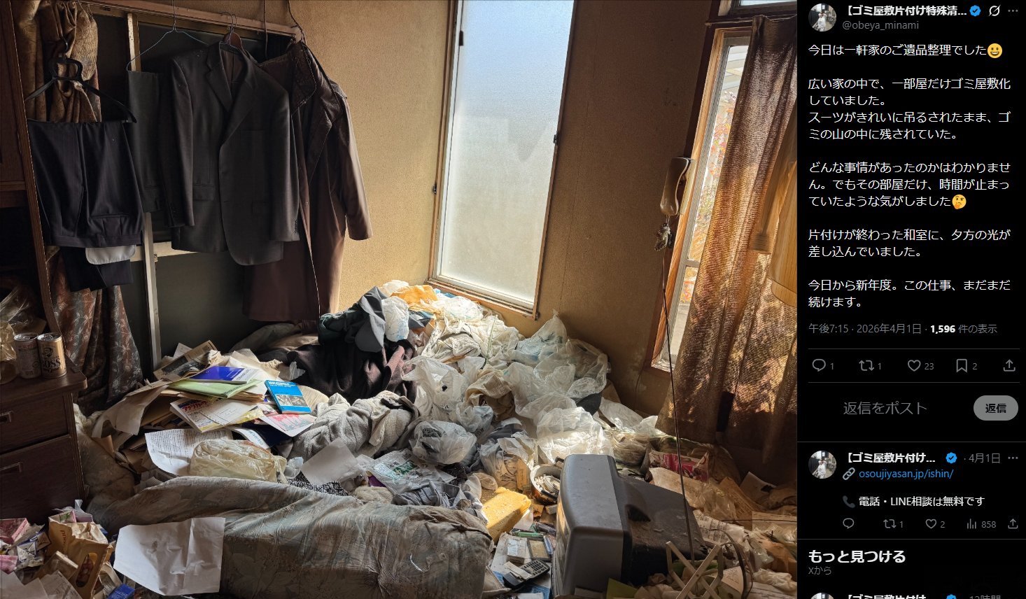 | … | 2無念Nameとしあき26/04/04(土)07:43:52No.1398421123+ 1775256232922.jpg-(294257 B) 亡くなったあとは特殊清掃の出番 |