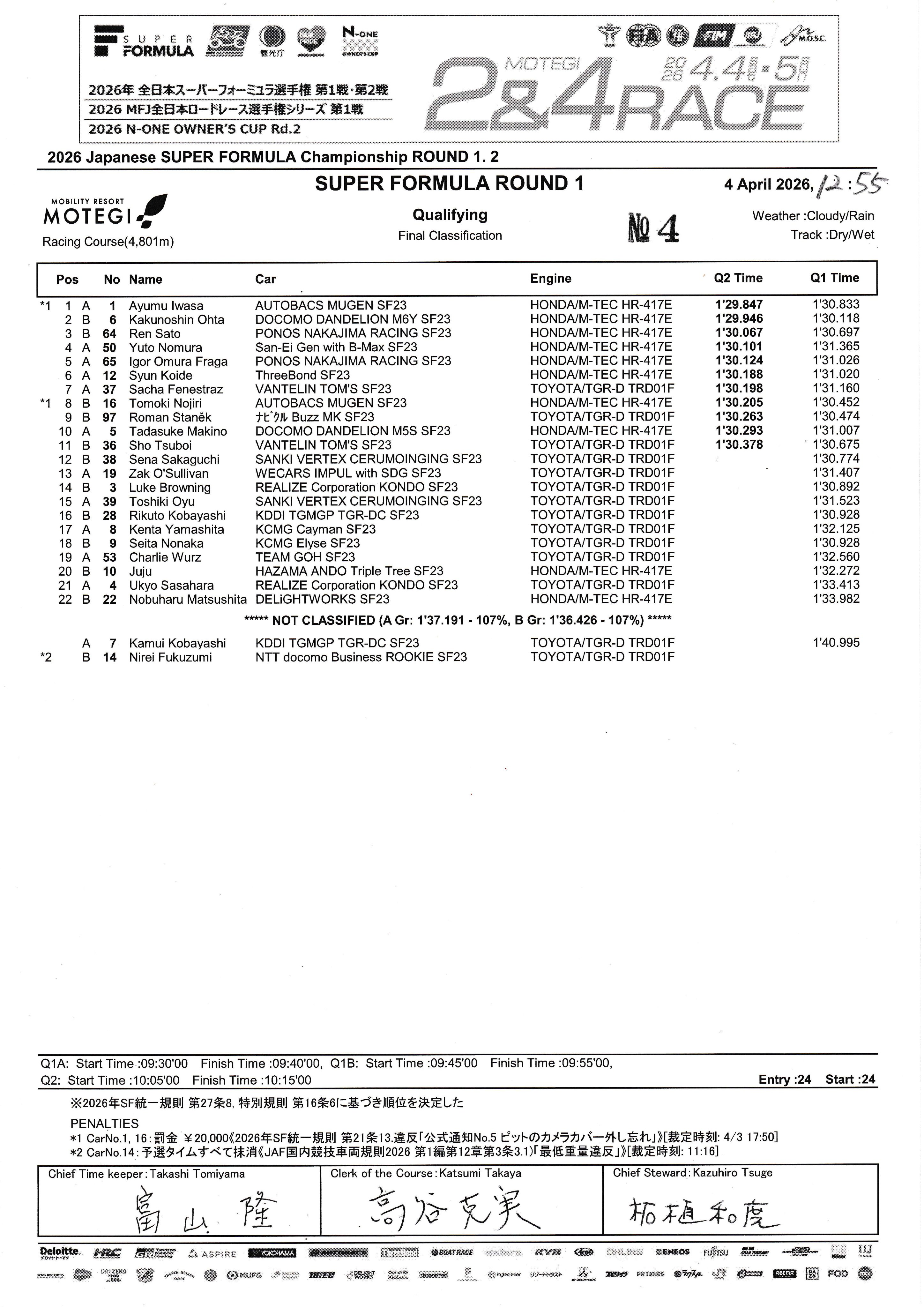 | … | 12無念Nameとしあき26/04/04(土)14:43:51 ID:F13w1nhINo.1398493801+SFの単独開催なら去年の最終鈴鹿ラウンドみたいに日曜午前に第1戦スプリントと第2戦予選やって第2戦決勝ってのも出来なくもないだろうけど、今回は2輪と併催だからなあ |