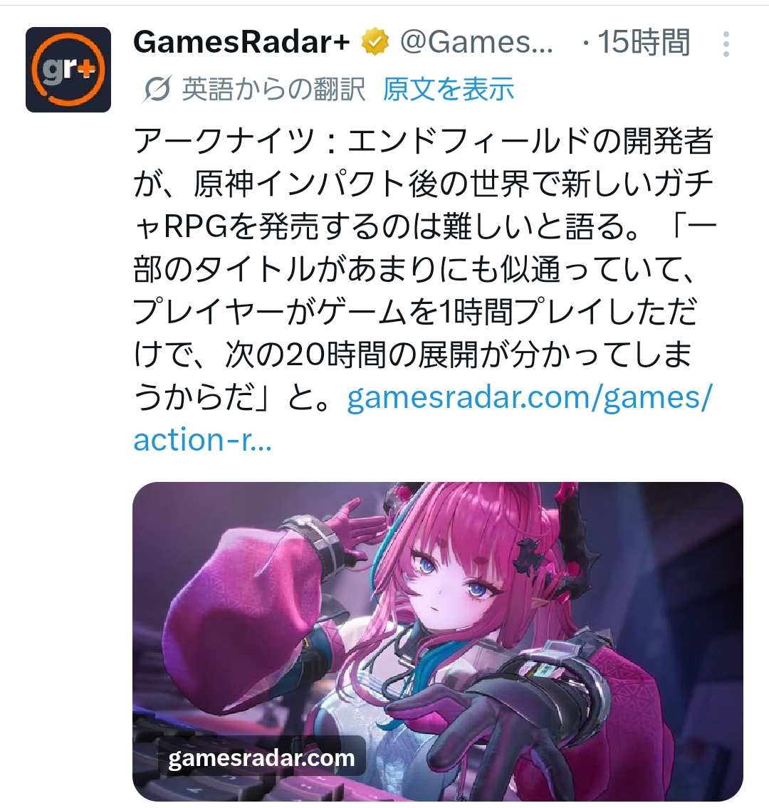 | … | 144無念Nameとしあき26/04/05(日)10:13:59No.1398699439+原神とエンドフィールドはゼルダとゼノブレイドくらいには違う |