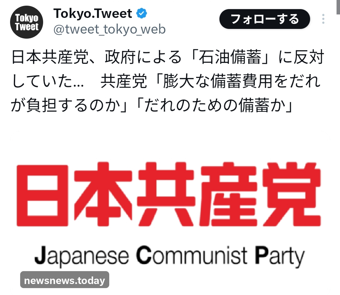 日本共産党、政府による「石油備蓄」に反対していた… 共産党「膨大な備蓄費用をだれが負担するのか」「だれのための備蓄か」削除された記事が1件あります.見る