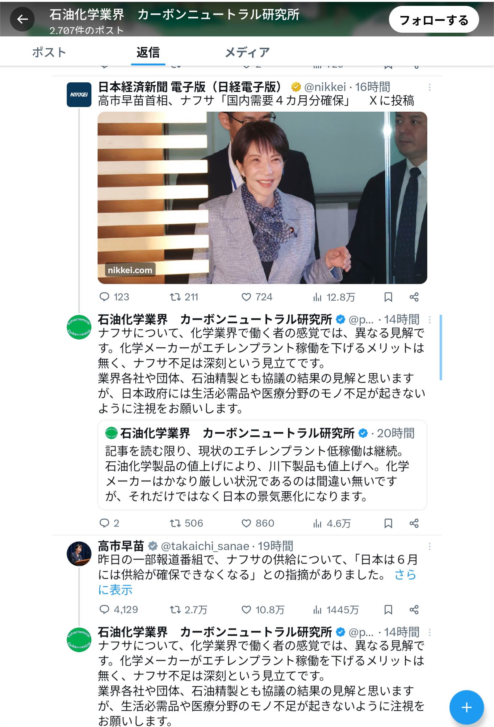 高市「エチレンは十分ある!デマ流すな!」