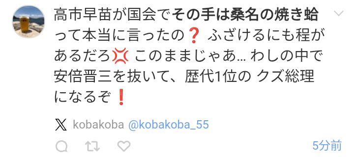 | … | 55無念Nameとしあき26/04/06(月)17:12:53No.1399011945そうだねx7>高市アンチがイキイキしてんな |