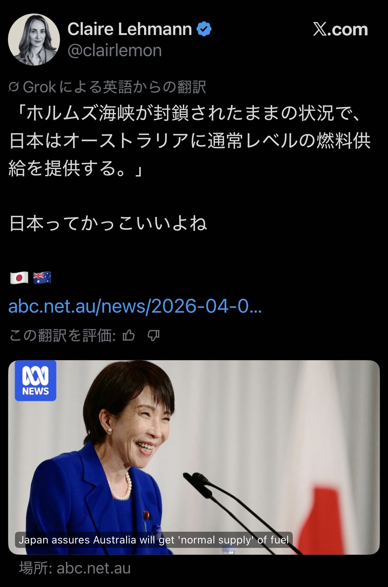 | … | 287無念Nameとしあき26/04/06(月)18:07:00No.1399021371+高市「中東以外の調達先を探してるから不足になることはない!」 |