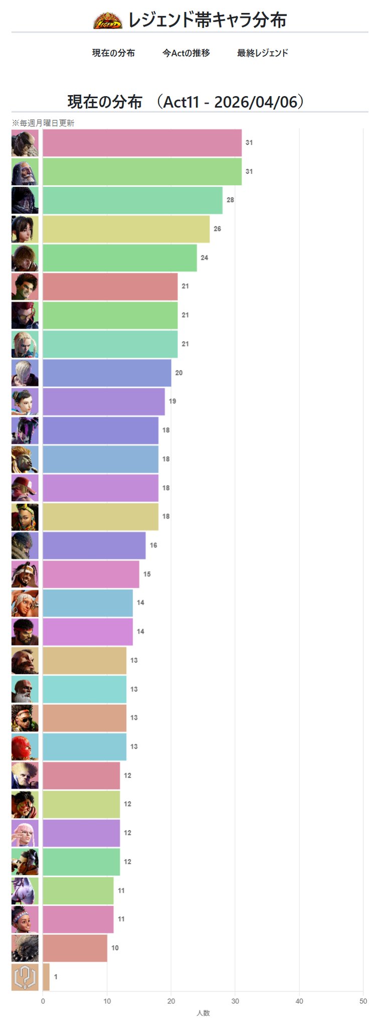 | … | 27無念Nameとしあき26/04/07(火)10:09:25No.1399154902+>これだけキャラいてレジェの分布がこの程度で分散してるの相当バランスよく見える気がする |