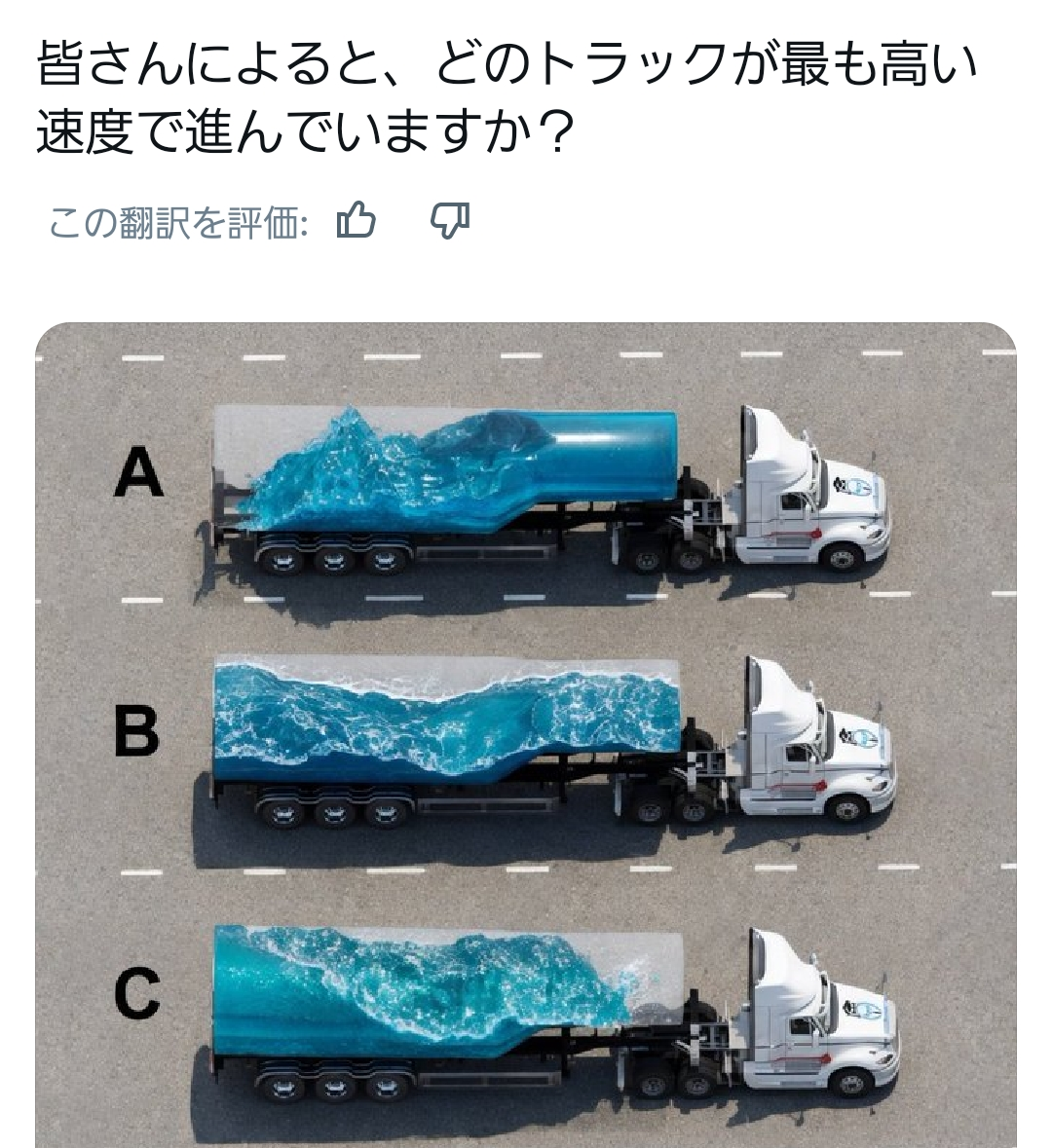 | … | 72無念Nameとしあき26/04/07(火)15:22:32No.1399202630+一般的なトラックだと減速中・巡航中・加速中で一番速度が出てるのは巡航中なのでBかな |
