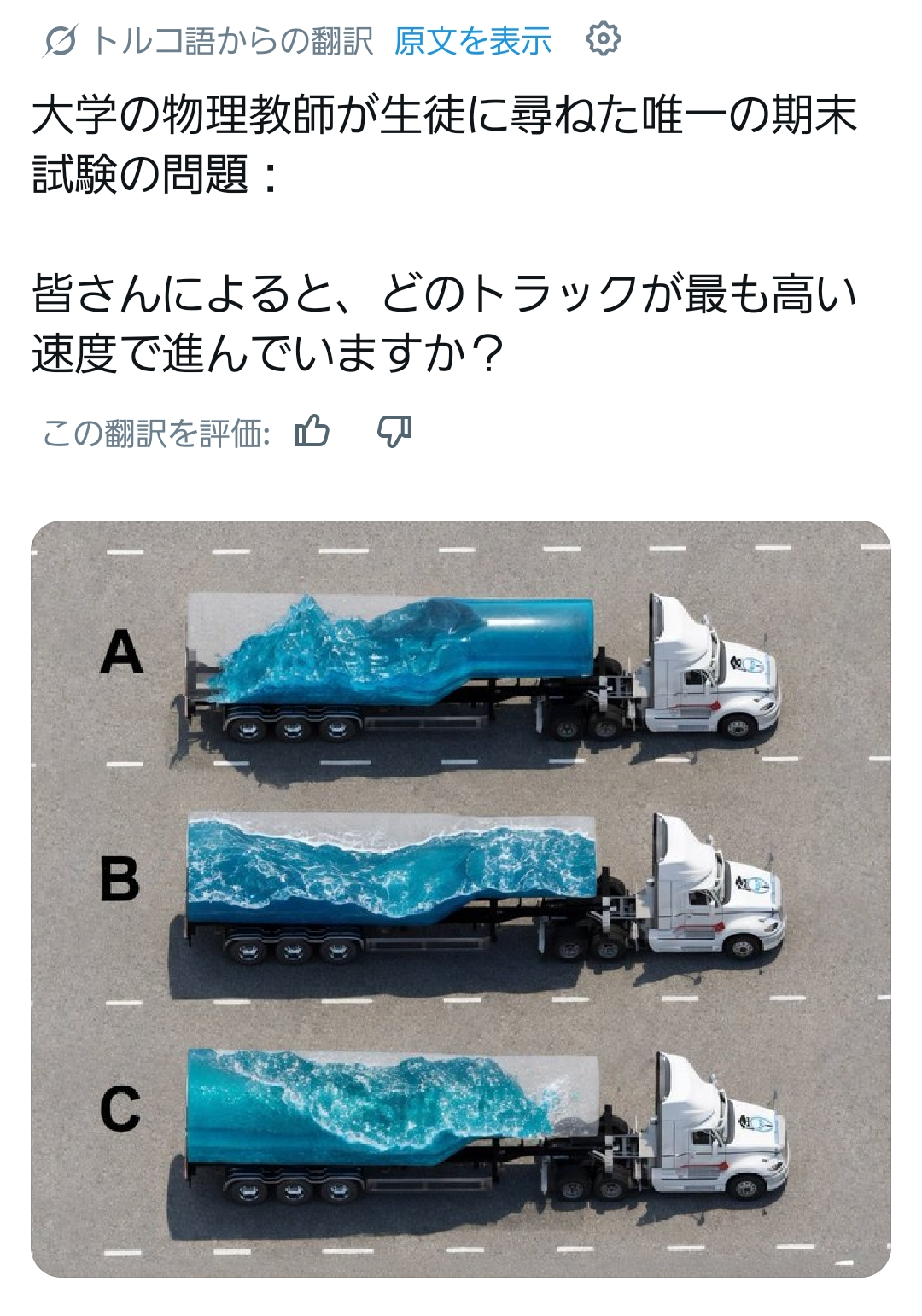 | … | 91無念Nameとしあき26/04/07(火)16:35:17No.1399213258+>この画像は、慣性の法則や加速度に関する物理のひっかけ問題としてよく使われます。 |
